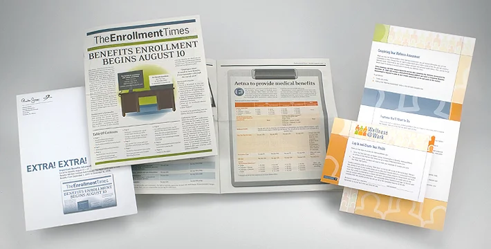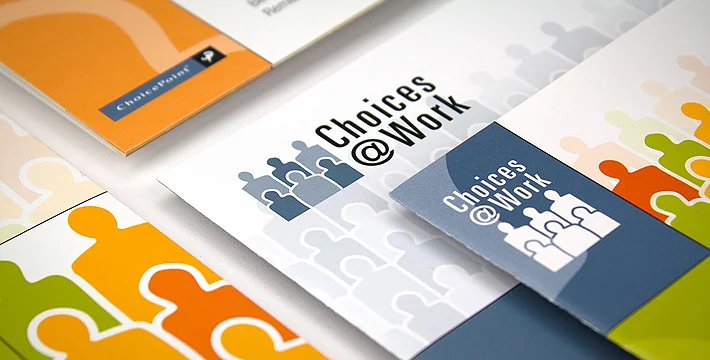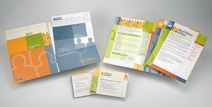 ChoicePoint used the opportunity of introducing a new health plan to explain to employees how open enrollment works, what ChoicePoint contributes to a plan, and what the employee's ever increasing role is in managing their benefits. Based on a Benefits@Work theme, Scott designed an identity, with supporting communication materials, to help consolidate the many messages into a consistent and engaging campaign.